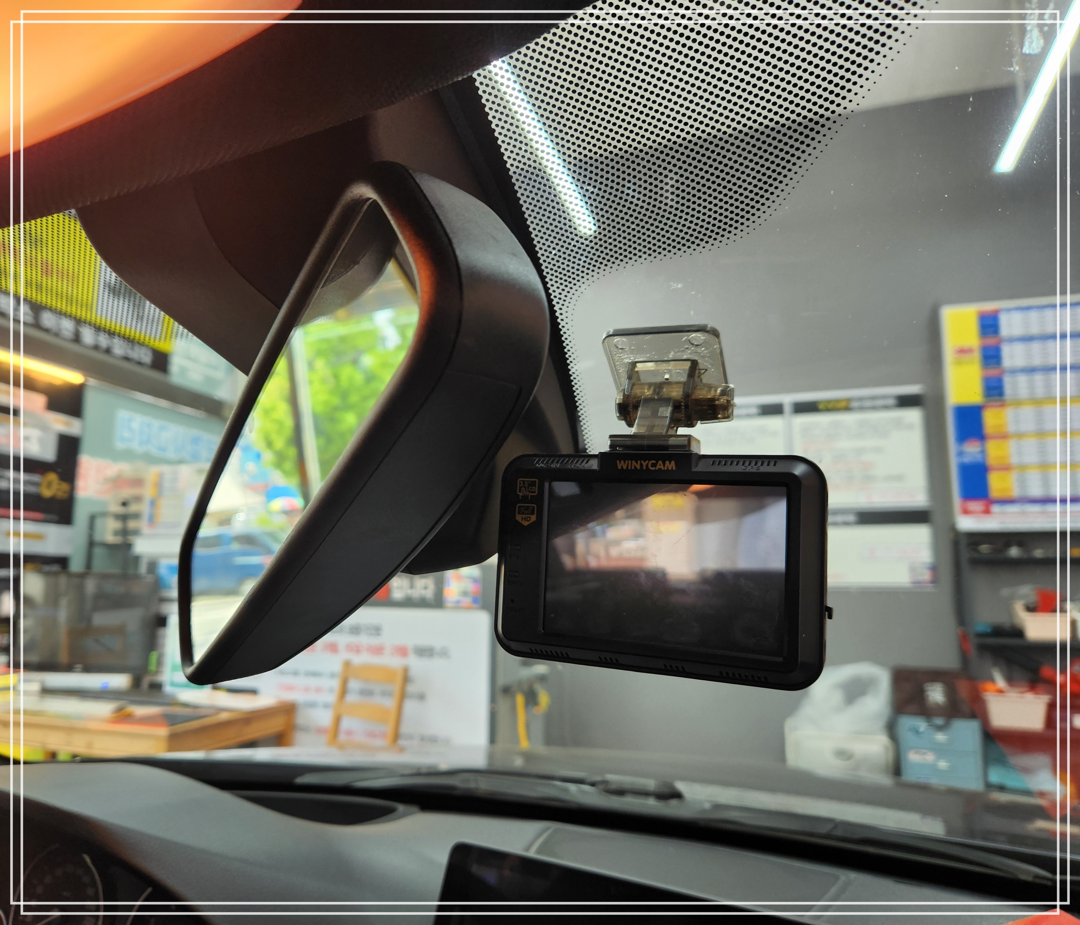 전방 카메라는 룸미러 오른쪽 상단에 설치했습니다.